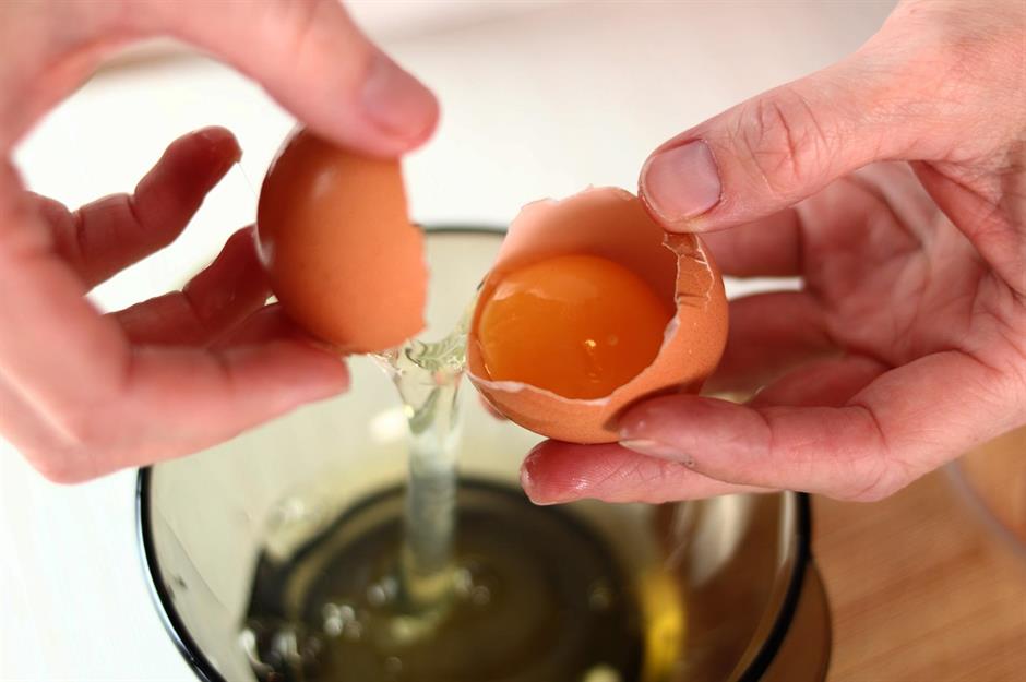 La forma "correcta" de cascar un huevo es no utilizar el borde de un cuenco, sino una superficie dura y plana. Simplemente, golpea el huevo contra la encimera hasta que la cáscara empiece a romperse. Ahora puedes abrirlo fácilmente sin preocuparte de que los trozos de cáscara entren en contacto con la comida. Lo único que hay que evitar es golpear el huevo con demasiada fuerza para que se rompa del todo, lo que te dejaría un huevo desperdiciado y la encimera de la cocina sucia.