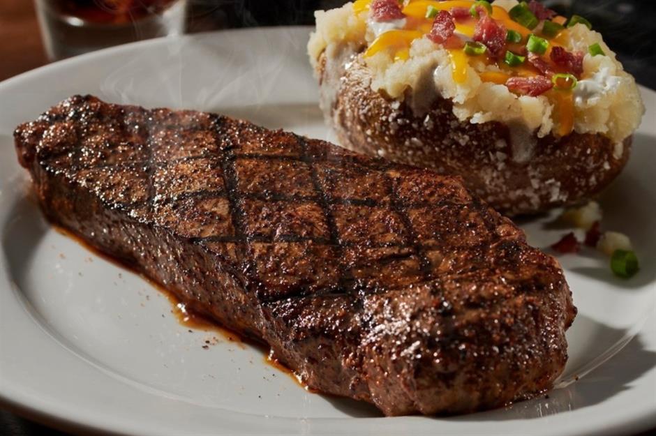 Juicy steaks form the meat of the menu at Texas Roadhouse. Choose your cut from porterhouse, sirloin, strip, ribeye and more, then pick from sides such as steak fries, mashed potatoes and green beans to build the perfect meal. Founded in 1993 as a reasonably priced Texas-style restaurant, the chain now has 655 locations in 49 out of 50 states, plus a few in countries including Canada, Mexico and the Philippines. It remains one of the most affordable places in the US to get a steak today.