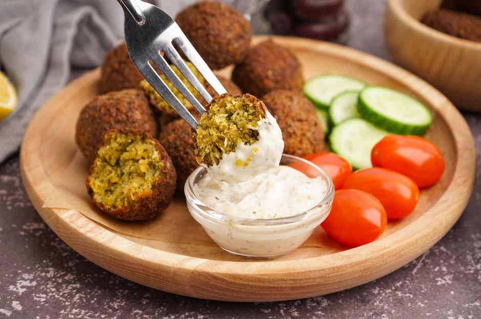 Um Falafel selbst zuzubereiten, brauchen Sie zunächst eine Dose Kichererbsen. Pürieren Sie diese, braten Sie etwas Zwiebel, Knoblauch und Chili an, fügen Kräuter und Gewürze wie Kreuzkümmel, Koriander und Petersilie hinzu und formen Sie die Mischung zu kleinen Bällchen.