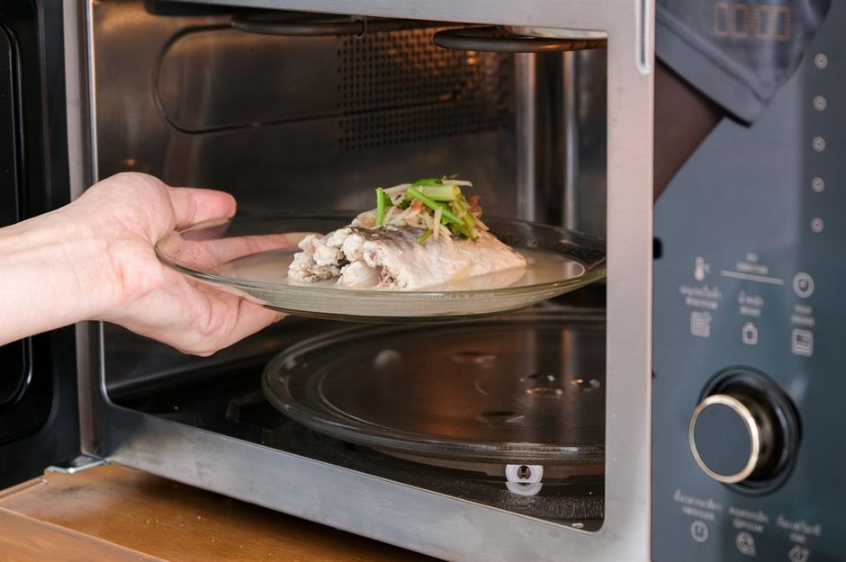 Los chefs te dirán que los mariscos y los pescados no deben cocinarse en el microondas. Son demasiado delicados para el calor intenso del aparato y casi siempre terminan muy secos y chiclosos. Las sobras de pescado y marisco se comen mejor frías, espolvoreadas sobre una ensalada, quizás, o como relleno en un bocadillo.