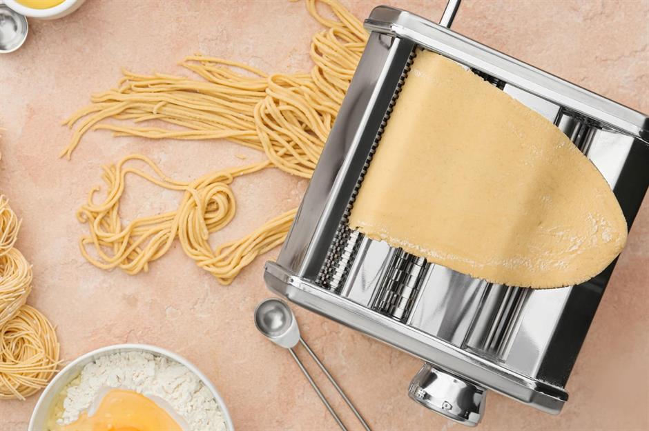 Auch wenn sie auf den ersten Blick praktisch wirken mag, werden Sie eine Nudelmaschine kaum bis gar nicht brauchen. Die meisten Nudelformen lassen sich ohne Maschine herstellen, und das Gerät ist eigentlich nur für Lasagneblätter und dünnere Pasta wie Tagliatelle und Linguine nützlich. Wenn Sie dünnen Nudelteig für Lasagne oder Ravioli selber machen wollen, tut es auch ein Nudelholz.