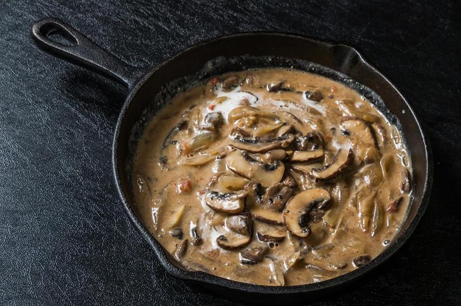 Dieses Gericht wurde im 19. Jahrhundert von französischen Köchen erfunden, die für die russische Kaufmannsfamilie Stroganow arbeiteten. Bœuf Stroganoff ist vor allem in Ost- und Mitteleuropa verbreitet. Traditionell besteht es aus gebratenem Rindfleisch und in Scheiben geschnittenen Pilzen, die mit einer sauren Sahnesauce serviert werden. In anderen Teilen der Welt, etwa in Skandinavien und Brasilien, gibt es auch andere Varianten des russischen Klassikers.