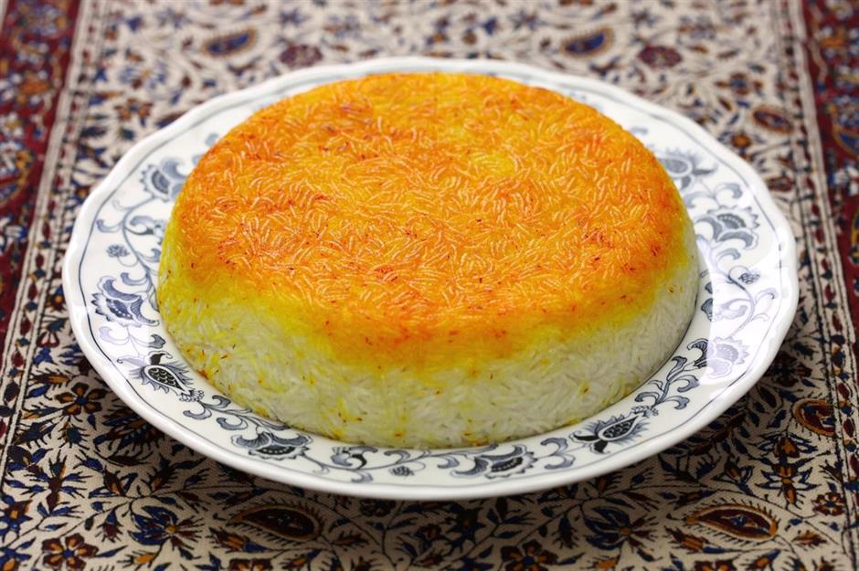 Dieses Reisgericht der persischen Küche wird vor allem wegen seiner knusprigen, goldbraunen Kruste geliebt. Tahdig bedeutet auf Persisch „Boden des Topfes“, was beschreibt, wie es zubereitet wird: Dabei wird zunächst eine Schicht Reis in einem Topf mit Öl oder Butter gegart, bis sich am Boden eine knusprige Kruste bildet. Diese Kruste ist das Highlight des Gerichts und bildet einen Kontrast zur lockeren Textur der restlichen Reiskörner. Tahdig kann mit Safran, Joghurt oder Gewürzen zubereitet werden und wird als Beilage zu Eintöpfen und gegrilltem Fleisch serviert.