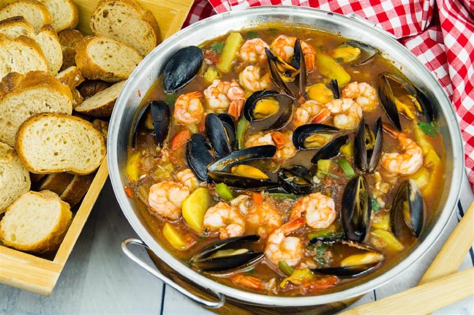 Dieser reichhaltige Meeresfrüchteeintopf ist nach dem Topf benannt, in dem er traditionell zubereitet wird. Er enthält eine Vielzahl frischer Meeresfrüchte, darunter Kabeljau, Garnelen, Miesmuscheln und Venusmuscheln, die in einer Sauce aus Tomaten, Olivenöl und Koriander gekocht werden. Das Gericht wurde ursprünglich von Fischern erfunden, die Zutaten der Cataplana variieren daher je nach Fang des Tages. Der portugiesische Eintopf wird mit knusprigem Brot, Kartoffeln oder Reis serviert.