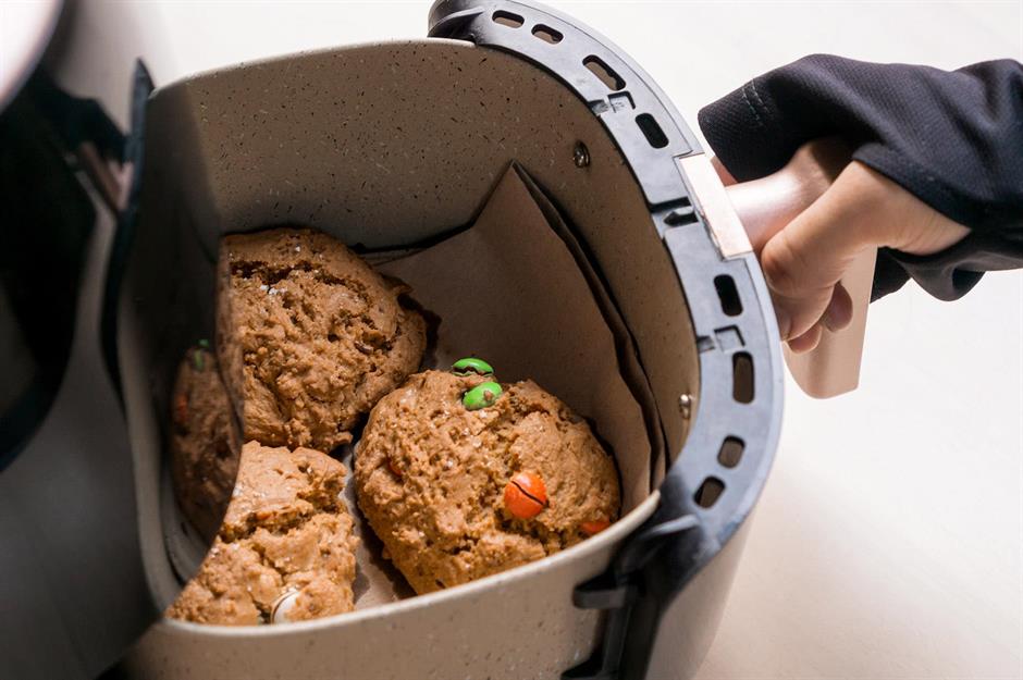 Wenn Sie Lust auf frische Kekse haben, aber nicht gleich ein ganzes Blech im Ofen backen wollen, ist eine Heißluftfritteuse die perfekte Wahl. Legen Sie sie einfach mit Folie aus und schon kann’s losgehen. Frischer Teig eignet sich am besten, aber wenn Sie Zeit sparen wollen, können Sie auch vorportionierten Teig aus dem Gefrierschrank backen.