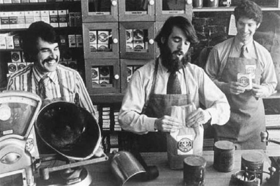 The very first Starbucks was opened at 1912 Pike Place, Seattle on March 31, 1971, by three University of San Francisco graduates (pictured) – and back then, it only sold coffee beans. The company stayed small until entrepreneur Howard Schultz bought it out in 1987 and embarked on an ambitious expansion plan. The original Starbucks location is still at Pike Place Market, and it's retained its appearance from back in the day.