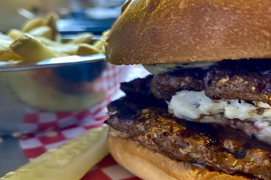 Onion lovers, take note: this burger is a must. Born out of the Great Depression to stretch beef patties further, the humble onion burger is now an American classic – and many say Tucker’s Onion Burgers does it best. Served as a single or double, these juicy, onion-packed burgers can be customized with cheese, tomato, pickles, jalapeños, lettuce, and all the classic condiments. Feeling bold? Order the Mother Tucker for triple the beef, triple the onions, and a serious food coma.
