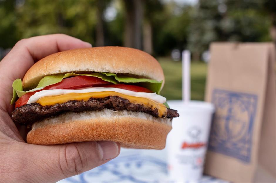 Thin, crisp, and flawlessly seared, Culver’s ButterBurger is deeply satisfying, with two patties as standard. The Midwest chain makes its patties from a mixture of sirloin, chuck, and plate beef, which gives the thinly pressed and grilled hamburgers a superior flavor. They're snuggled inside Culver’s signature lightly toasted, buttered buns with slices of melty American cheese, and toppings can be customized to taste. Go for the Works to get pickles, ketchup, mustard, and raw onions, and layer in tomato and lettuce too, if that’s your vibe.