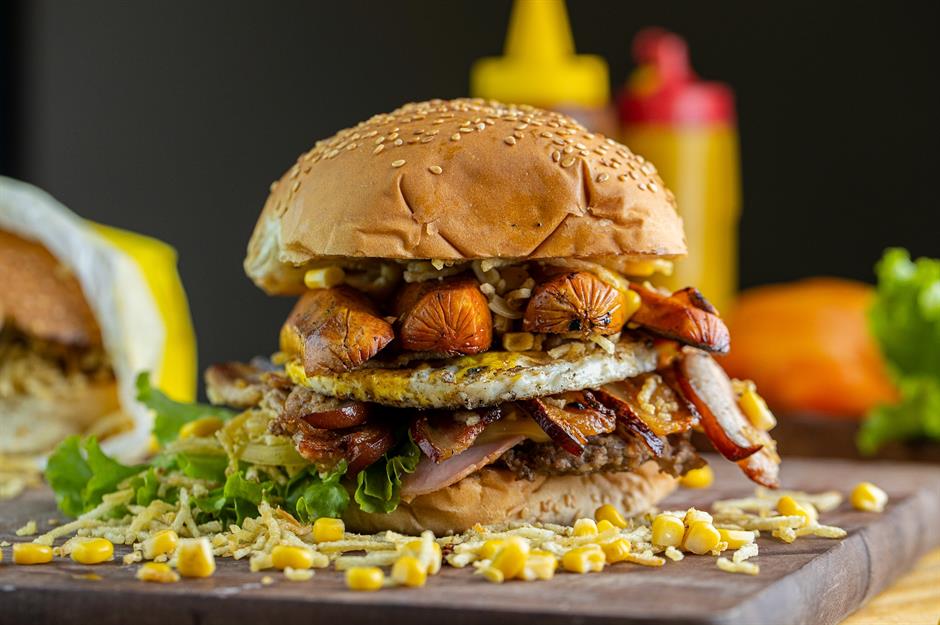 Stacked sky high and teetering with a dozen different toppings (not including the bun), Brazil’s enormous version of the classic burger can be hard to get your teeth around. Its ingredients aren’t fixed, though there are a few typical additions that make their way onto burgers across the country. Fried eggs, deli meats, shoestring fries and steamed corn kernels are all commonly piled high on X-Tudo burgers.