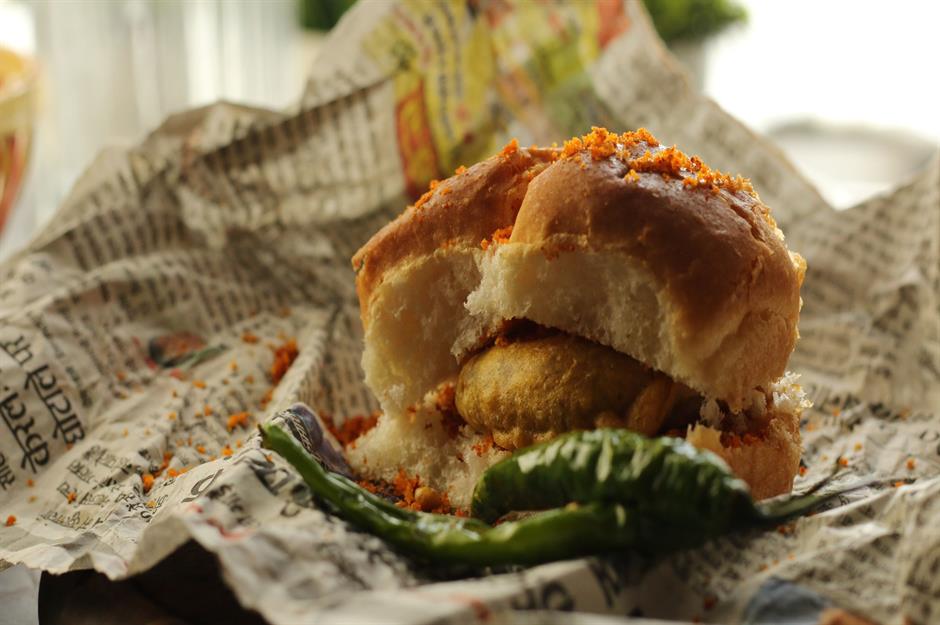 With more than 80% of India’s adults avoiding beef – and nearly 40% identifying as vegetarian – Mumbai’s street vendors created a burger that fits local tastes: the vada pav. This iconic sandwich features a spiced potato fritter tucked into a soft bread roll, then layered with an explosion of flavours. Green, tamarind and garlic chutneys bring tang and heat, while crunchy bits of fried batter and fresh green chillies add extra texture and bite.