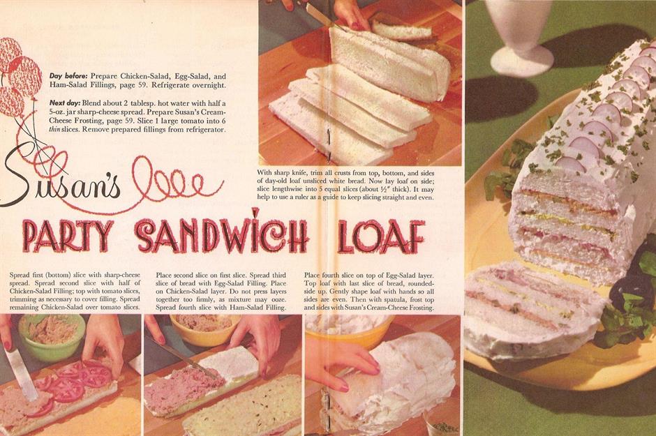 It looks like a cake, and it’s iced like one, but underneath the toppings you'll find all the ingredients you'd expect in a sandwich. Bread and fillings such as ham, chicken, egg and salad were layered in this 1950s sandwich, which would then be frosted with cream cheese and other garnishes. This retro American invention may not seem so strange to people in Sweden – it’s believed to have been inspired by a traditional smörgåstorta (sandwich cake), which is still enjoyed at midsummer feasts today.