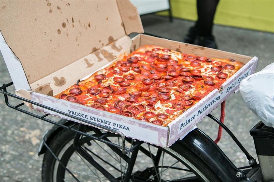 A slice of pie perfection awaits you at Prince Street Pizza, a slick chain famed for its crisp Sicilian-style slices. Along with its Sicilian 'SoHo' squares, it sells thin and crusty round Neapolitan pizzas – all slathered with its signature garlicky marinara or fra diavolo sauce. Grab a slice or a whole one and lean into the classic NYC pizza shop experience. Hot-to-go flavors include Spicy Spring with crisp-edged curls of pepperoni, fresh mozzarella, and pecorino Romano or the Spicy Vodka, topped with a prosciutto-enriched vodka sauce and smothered in cheese. Deeply delicious.