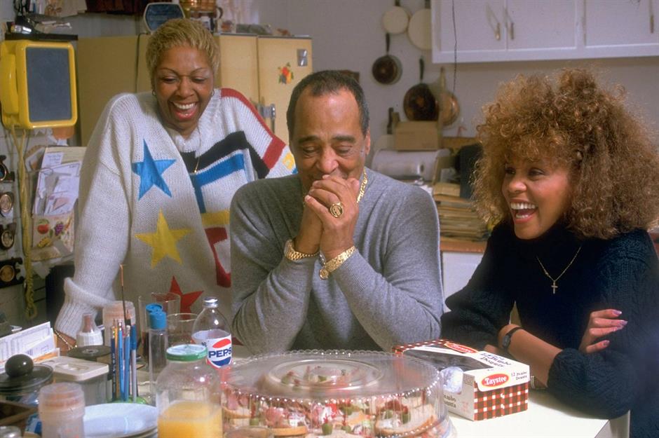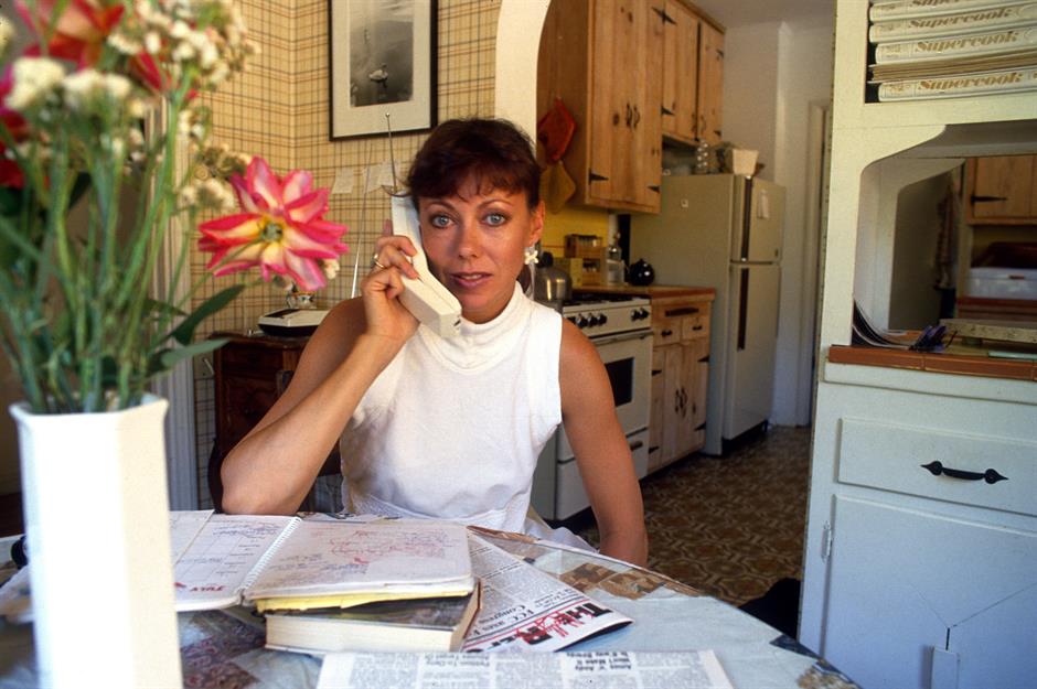 This charming photo of late singer Whitney Houston was taken in 1987, when she was just 23, at home with her parents, Cissy and John. The neutral décor and copper pans on the wall create a familiar scene for anyone who remembers growing up in the 1980s – especially if you had a telephone in the kitchen. This bright yellow corded model features a chalkboard panel for writing down messages and numbers, along with an organiser underneath for notes, bills and letters.