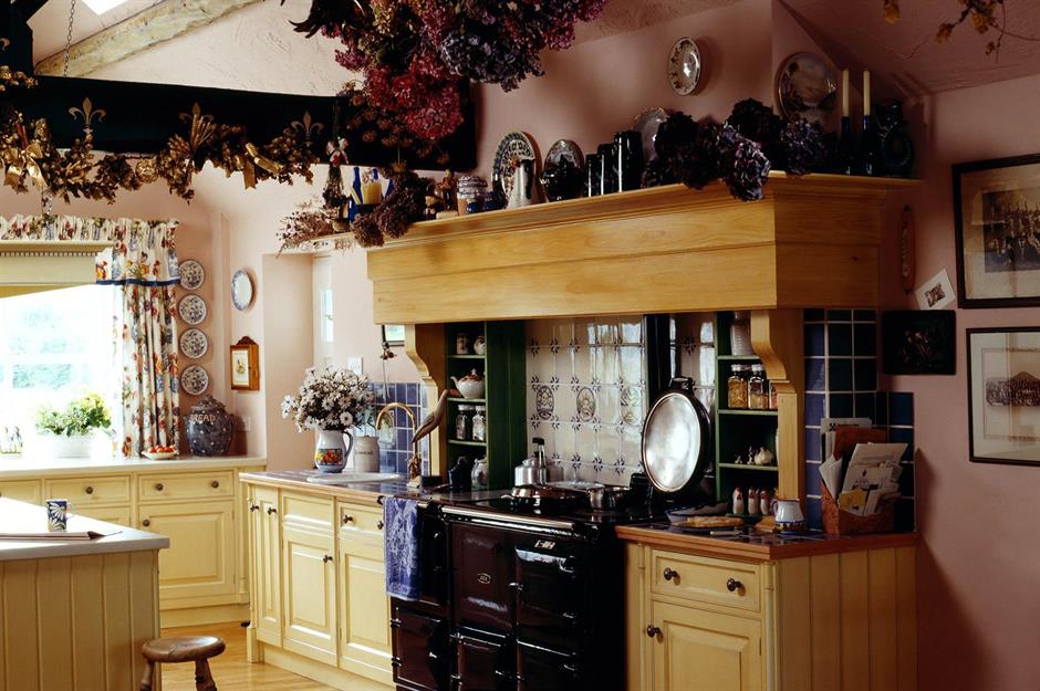 Along with the flounces, frills and florals of over-the-top 1980s country décor, no kitchen or dining room was complete without a large dresser filled with cups, crockery and tableware. This one was upcycled with a coat of pistachio green paint and topped with another 1980s staple – a bouquet of dried flowers and grasses. We have to say, it still looks pretty good by modern-day standards.