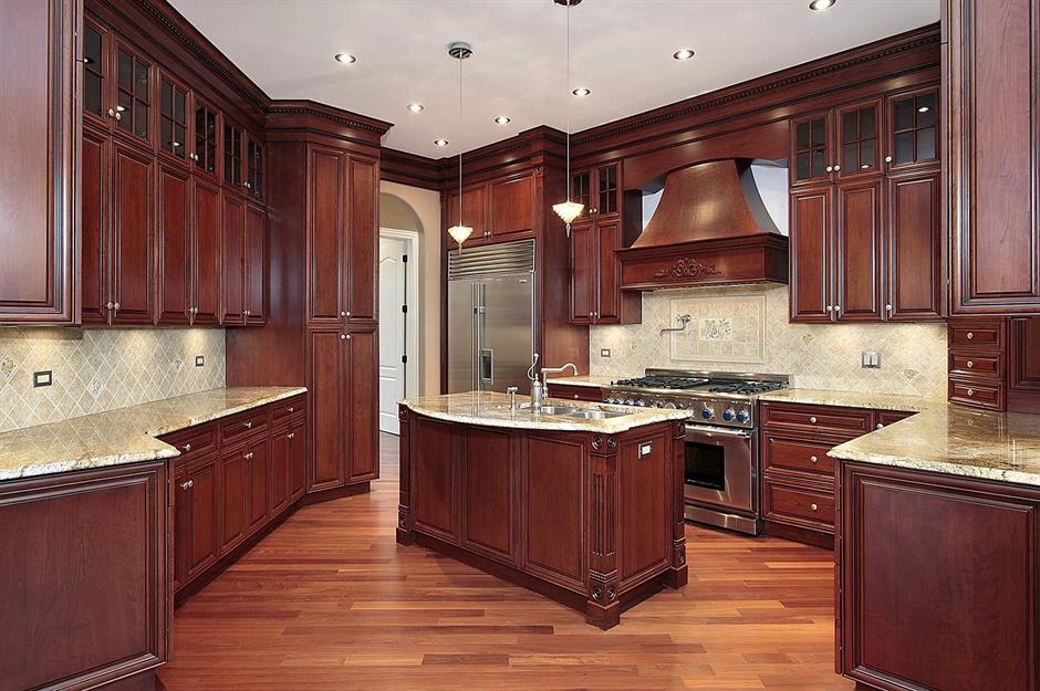 Rich cherry wood was the cabinetry choice of the era, seen in everything from compact galley kitchens to expansive family spaces. With its deep red tones and polished finish, it paired beautifully with marble-look countertops, built-in appliances and the oversized cooker hoods that were so popular at the time. These kitchens were designed to impress – high-gloss, high-function and a clear upgrade from the avocado and laminate-heavy schemes of the 1970s.