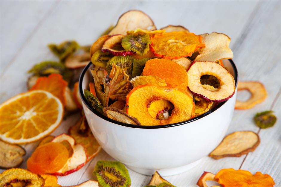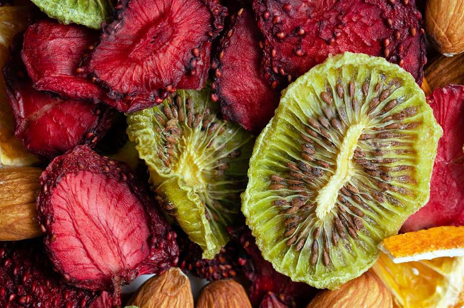 Dried fruit is high in energy, flavour and nutrients, is versatile and lightweight and can last for six to 12 months in the right conditions. Meanwhile, the likes of meat jerky, dehydrated soy and textured vegetable proteins are great sources of protein. Just try to avoid products with added salt and sugar.