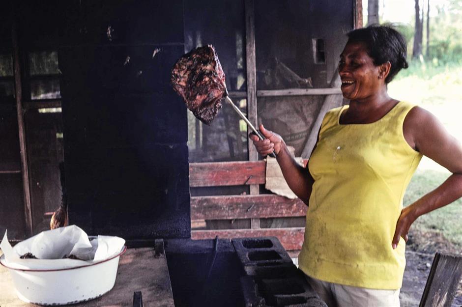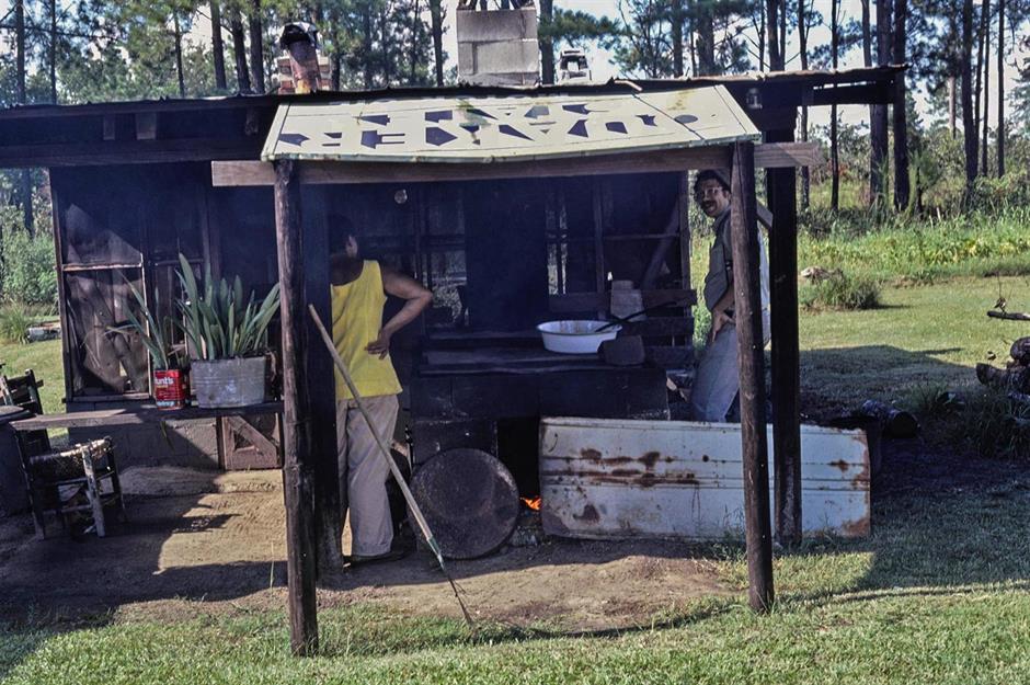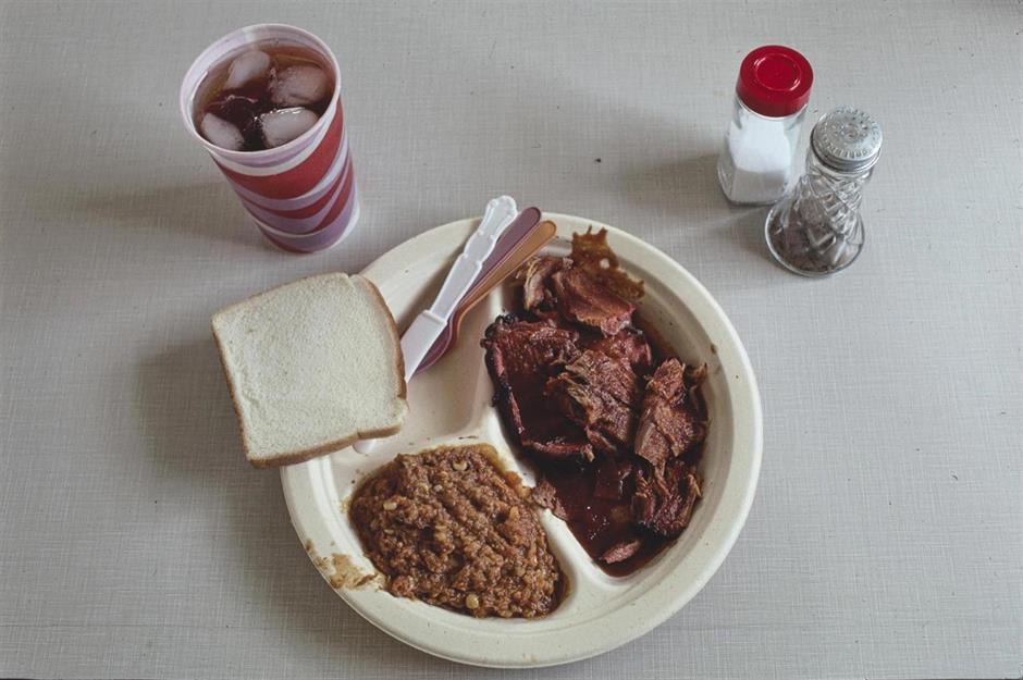 This 1977 photograph depicts a modest roadside eatery in Ty Ty, Georgia, USA, run by pitmaster Gladys Dorsey, who at the time had been barbecuing for 12 years. Reflecting on her earliest attempts, she recalled: “The first time I cooked it was just black and raw on the inside. About a hundred pounds of it!” Dorsey’s cooking embodies the Georgia barbecue tradition, centred on pork shoulder cooked low and slow over wood, paired with a thin vinegar- or mustard-based sauce – flavours shaped by Carolinian influence.