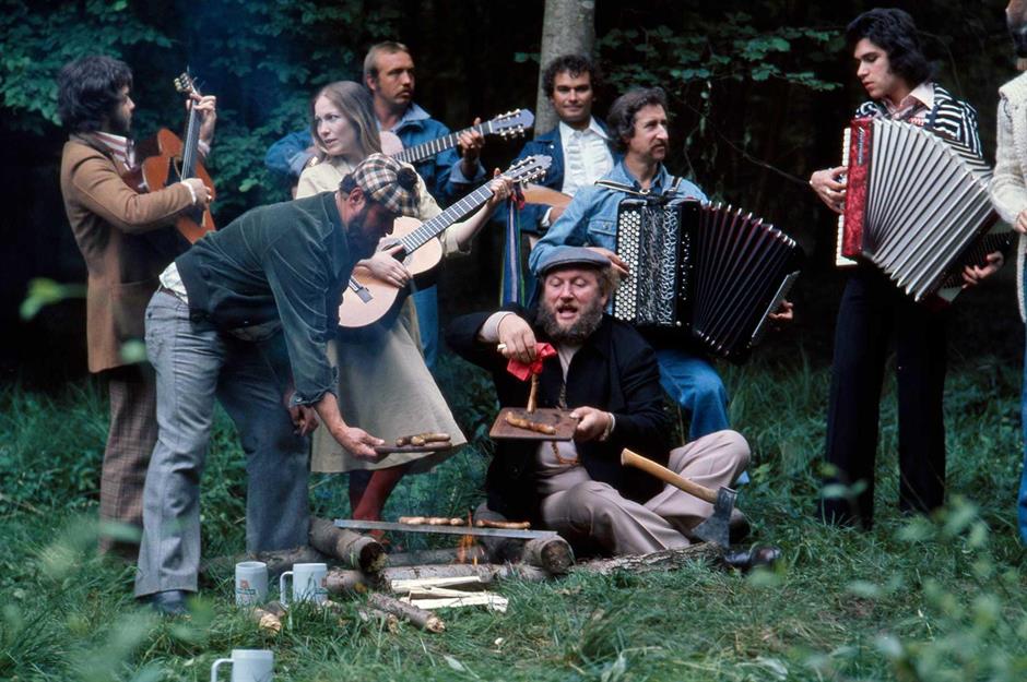 This 1975 photograph captures German bass vocalist Ivan Rebroff enjoying a rustic forest barbecue with friends, accompanied by guitars, accordions and sizzling sausages. The scene reflects Germany’s enduring passion for outdoor dining – particularly the tradition of grilling over open flames. Known locally as grillen, these gatherings often feature classic sausages such as Bratwurst and Rostbratwurst, cooked simply over glowing logs or coals.