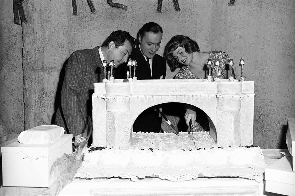 British actor Charlie Chaplin, who rose to fame during the silent film era, was presented with a towering five-foot (1.5m) cake on his 77th birthday in 1966 at Pinewood Studios near London. At the time, Chaplin was filming the romantic comedy A Countess from Hong Kong, and he's pictured here with his co-stars – silver-screen icons Sophia Loren, Marlon Brando and Tippi Hedren – as well as his wife, Oona, and three of their children. Adorned with fondant flowers, the cake’s top tier paid tribute to the film: a figurine of Chaplin’s famous Little Tramp character stood proudly at its pinnacle.