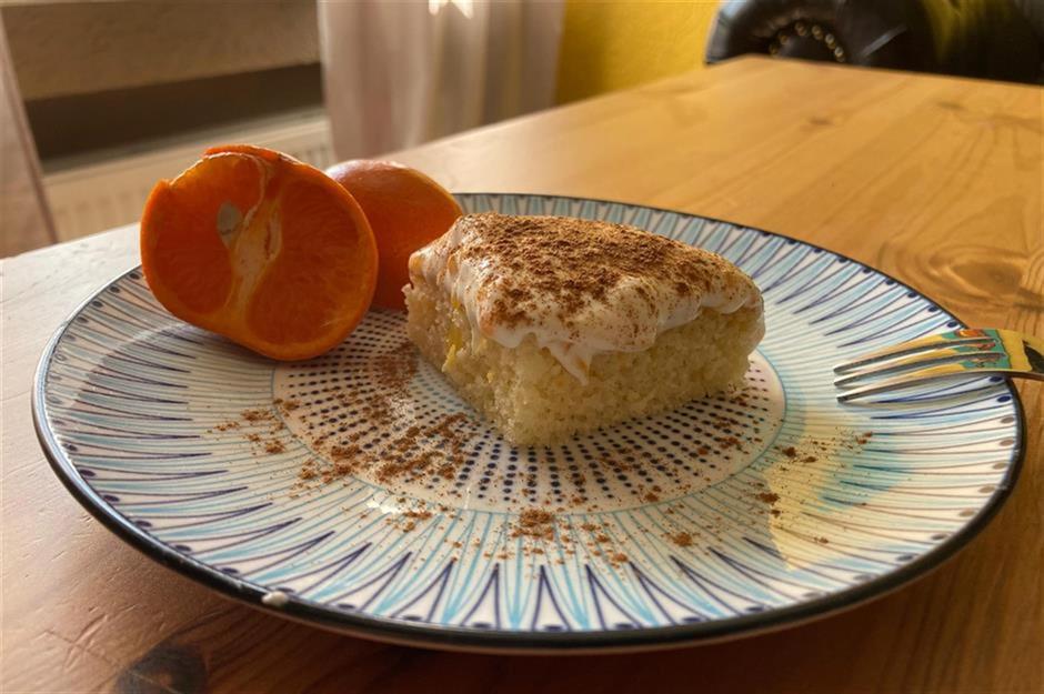 Der Biskuitklassiker wird meist mit einer einfachen Zitronenglasur oder mit einer Schicht aus saurer Sahne, Schlagsahne, Zucker und Mandarinenstücken aus der Dose überzogen.