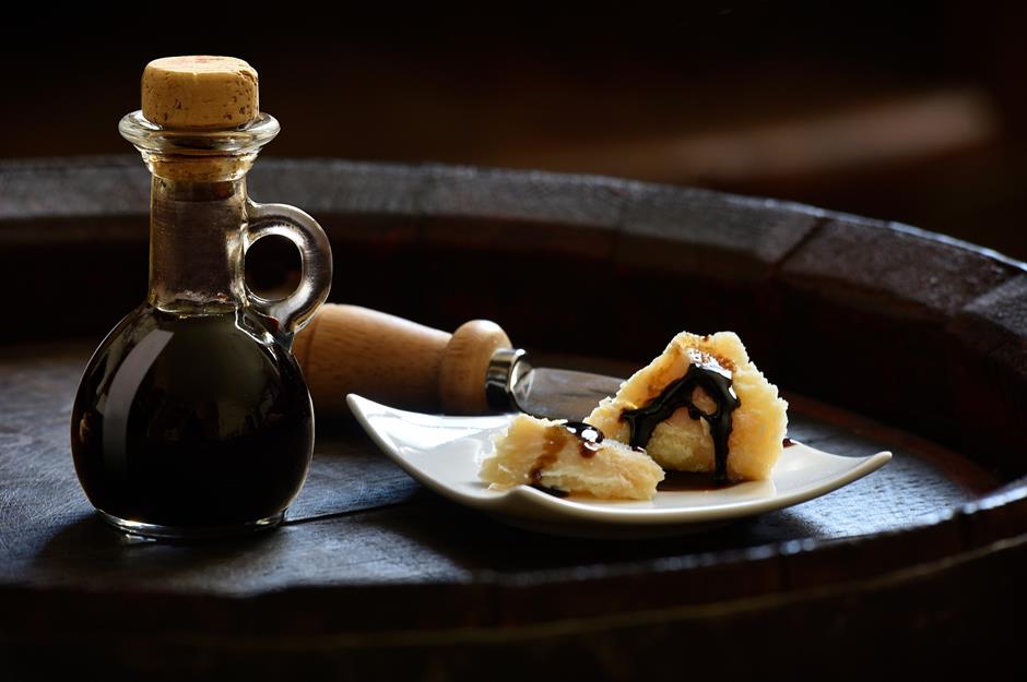 Balsamic vinegar has roots in Roman times, when grape must (the juice from crushed grape stems, seeds and skins) was used medicinally. In the Middle Ages, it was sometimes even included in a bride's dowry. Cooked to concentrate its sweetness, the vinegar is stored in wooden barrels for 12 to 25 years. As it ages, it's moved into smaller barrels, each made from different wood, to enhance the flavour. As a result, bottles with the DOP (Protected Designation of Origin) label can sell for €100 ($116/£87) or more.