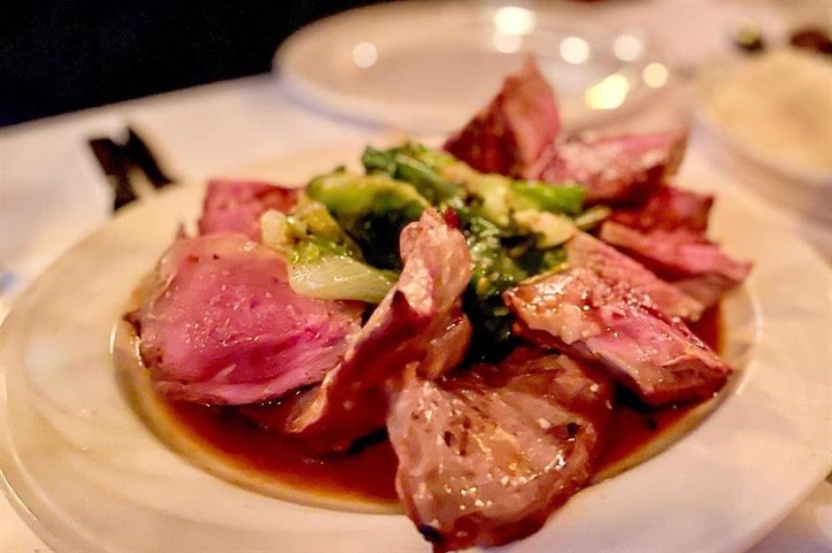 Old-school steakhouse Keen’s has been serving diners since 1885 – and Anthony Bourdain once declared that you won’t find anywhere better, or more authentic. The historic setting, complete with oil paintings, rich wood paneling, and impressive taxidermy, perfectly complements the classic menu. To dine like Bourdain, order the jumbo shrimp cocktail, king’s cut prime rib, savory mutton chops, and creamed spinach.