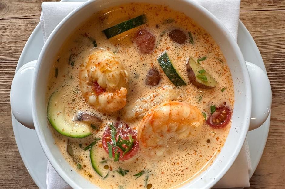 Anthony Bourdain loved this iconic hot dog stand on Kauai’s picturesque Poipu Beach, famously describing its sweet Hawaiian buns – fully encasing each dog – as 'disturbing in appearance' but 'ingenious in design.' Guests can choose between veggie or Polish dogs, smothered in the stand’s secret garlic-lemon sauce with varying levels of heat, and topped with tropical fruits like coconut, pineapple, papaya, banana, and mango (Bourdain’s personal favorite).