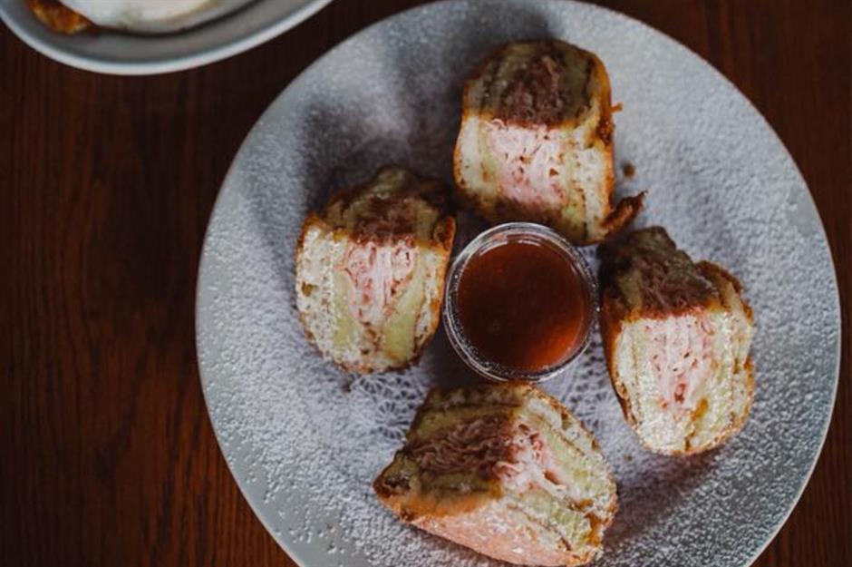 This farm-to-table restaurant is known for its fresh flavors, friendly staff, and mighty meals. When Fieri visited for Diners, Drive-Ins and Dives, he was so impressed with the Monte Cristo that he called it a ‘destination dish’ worth traveling the country for. The sammie first sees shaved ham and Swiss cheese sandwiched between savory French toast; it's then battered, fried, and served with house-made syrup, eggs, and hash browns. Locals agree with Fieri and say you really can’t beat it.