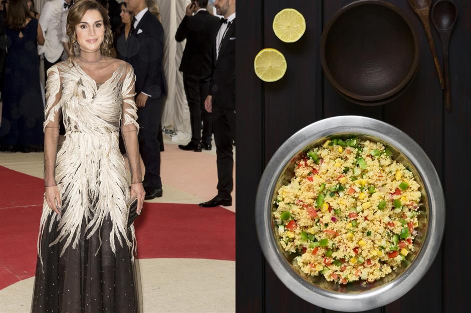 The charming and progressive Queen Consort of Jordan, Rania Al-Abdullah, is an advocate of healthy living and is said to follow a macrobiotic diet. She’s known to have a fondness for couscous, almonds, walnuts and Mediterranean cuisine, and her treat of choice is dark chocolate.