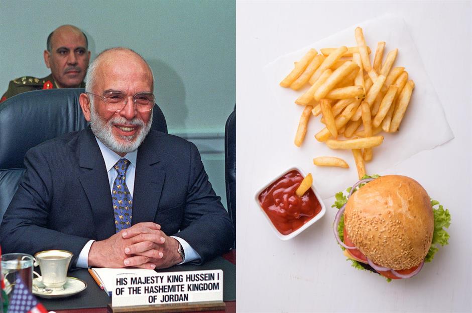 Hussein bin Talal, who was King of Jordan from 1952 until his death in 1999, was partial to a hamburger and French fries, according to a 1985 article published in United Press International. His American-born fourth wife and widow, Queen Noor, prefers more natural food and is known to eat very little meat.