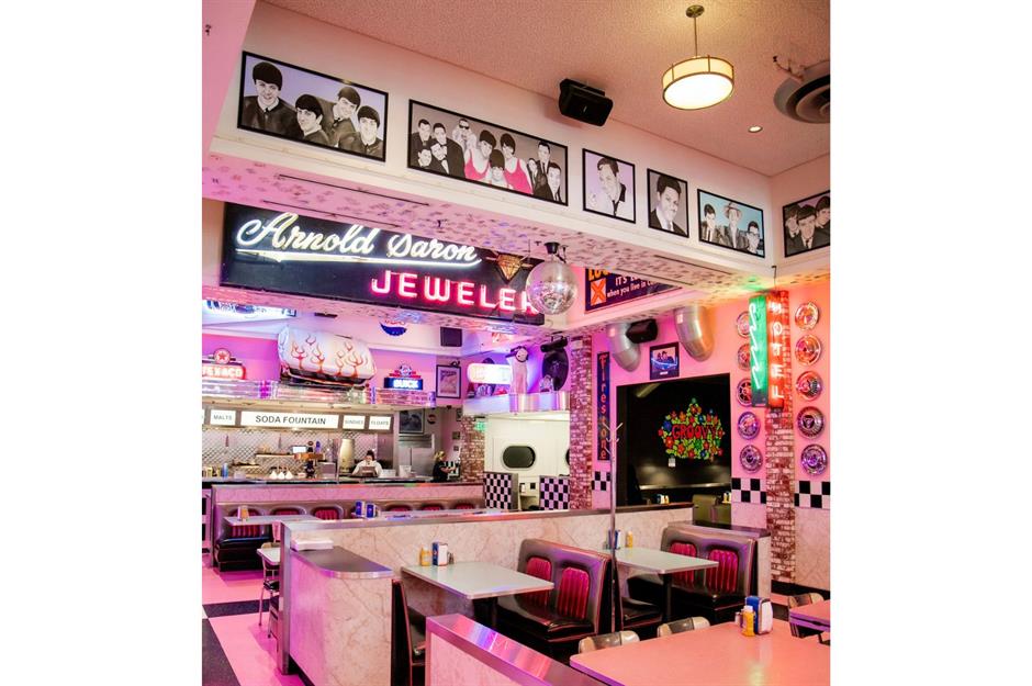 What may at first look like Barbie's Dreamhouse is actually The Pink Cadillac Diner, which reopened in 2022 after being sold to new owners. It’s painted bright pink to match the antique Cadillac outside and, as if that didn’t make it distinctive enough, there’s also a giant King Kong statue clutching an airplane nearby. If you’re lucky, an Elvis impersonator will make your dining experience here even more memorable.