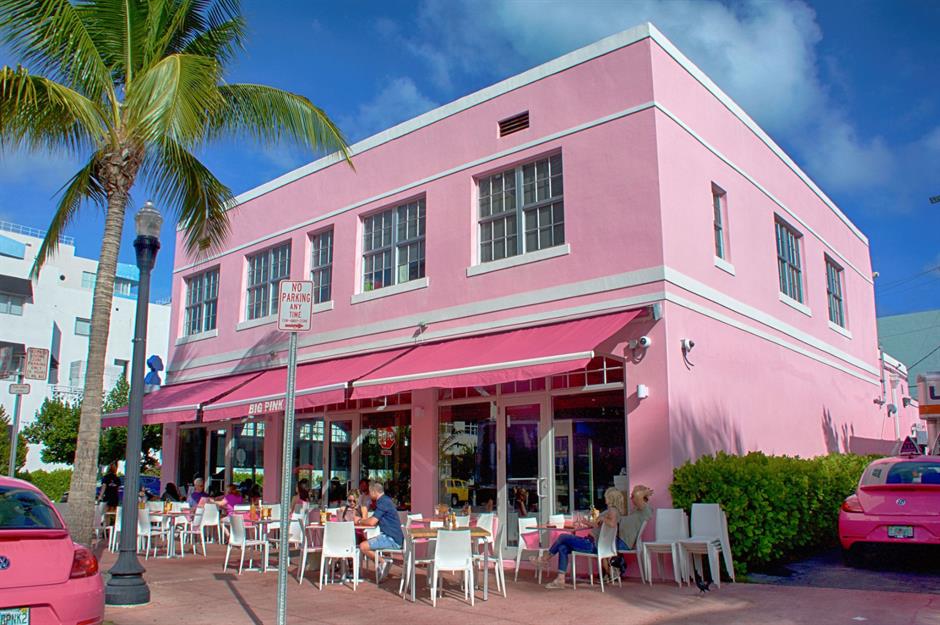 This pink paradise is impossible to miss, and it’s become a bit of a tourist attraction. Diners love the colorful exterior and matching pink VW Beetles, which can be found parked outside the restaurant front. Inside, the pink theme continues, with bright booths and a retro bubblegum machine. The menu is just as exciting, with breakfast burritos, burgers swaddled between waffles, and fudge brownie sundaes.