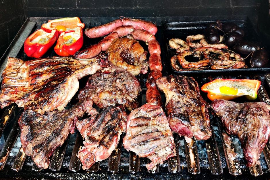 Argentinian barbecue, or asado, is both a celebration of the country’s superb beef and part of its gaucho culture. One of the things that makes asado so special is the mix of prime cuts, offal and sausages traditionally served together. One meal could easily include everything from ojo de bife (rib-eye) to morcilla (blood sausage) and provoleta (provolone cheese that's grilled until deliciously gooey). Capture the Argentinian spirit by drizzling traditional herby sauce chimichurri over your meats.