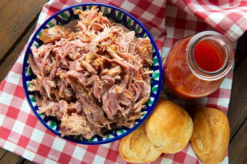 Beer can chicken (rumoured to have originated in Louisiana) is more than just a barbecue novelty. Perched upright on an open can of beer, the chicken roasts from the inside out; the steam keeps the meat incredibly moist, while the skin crisps all over. It may look a little quirky, but it delivers big on flavour and tenderness. For extra punch, try pairing it with a tangy, creamy Alabama-style white barbecue sauce to cut through the richness.