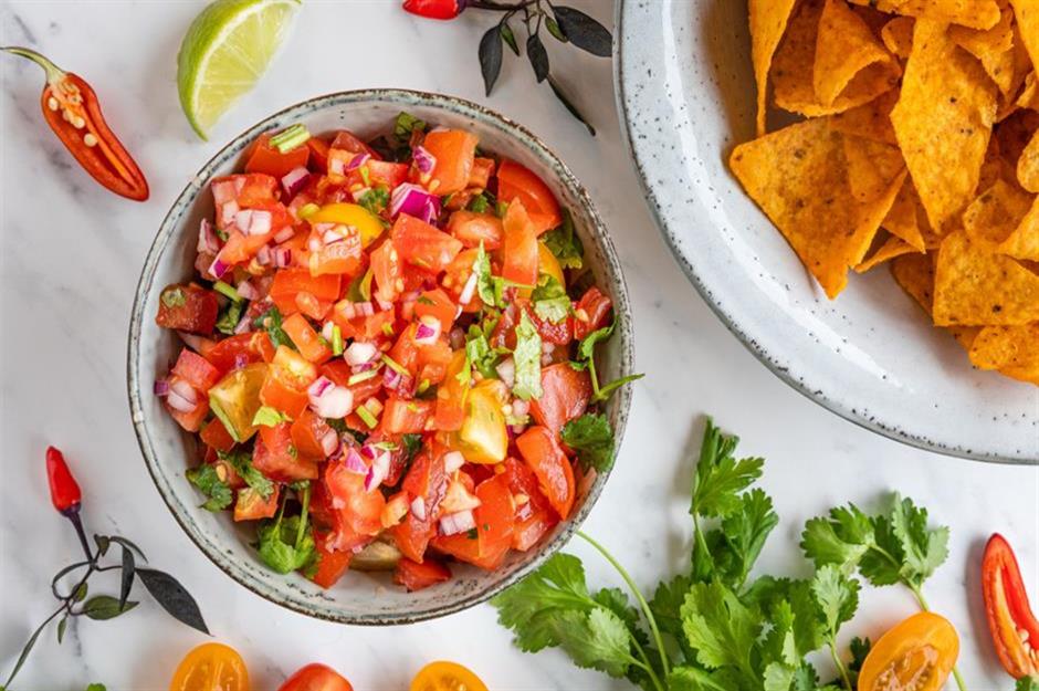 It doesn’t get much simpler than this tomato-based favourite. Take four of the ripest tomatoes you can find (a mix of colours is nice) and finely chop. Do the same with a quarter of a red onion and combine with a crushed garlic clove, then season to taste with salt and pepper. The salsa will be lovely served with tortilla chips as is or take it up a level with a squeeze of lime juice and some chopped coriander.