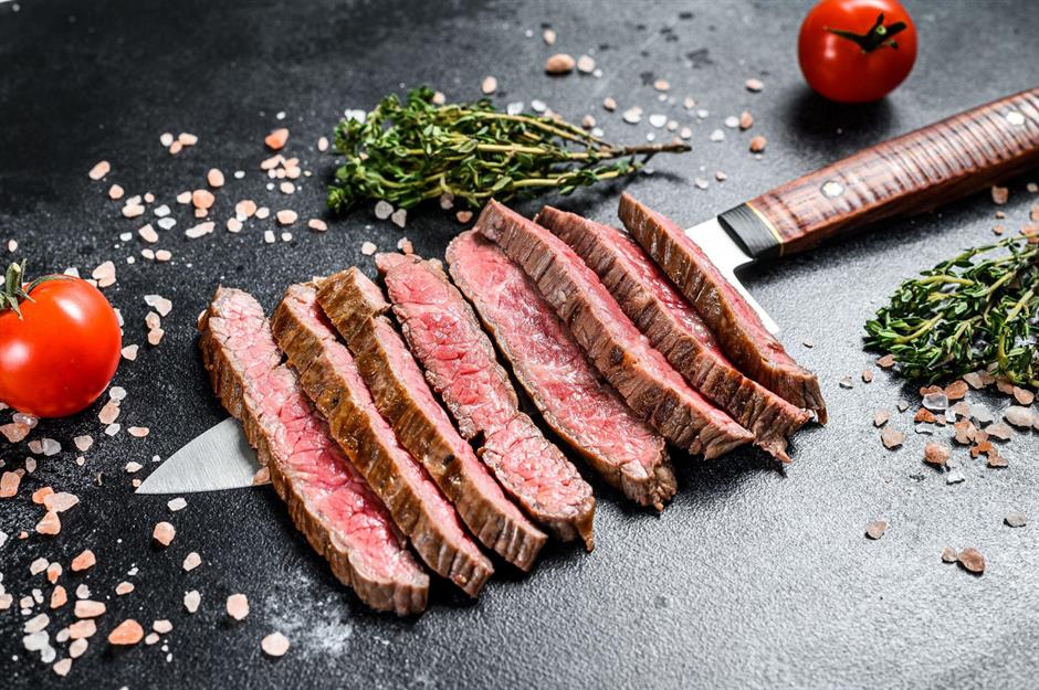 Beef can harbour bacteria such as E. coli and salmonella, so chops and steaks need to reach an internal temperature of 63°C (145°F) to kill any harmful bacteria, while minced beef should come up to 71°C (160°F). Use a meat thermometer to be sure.