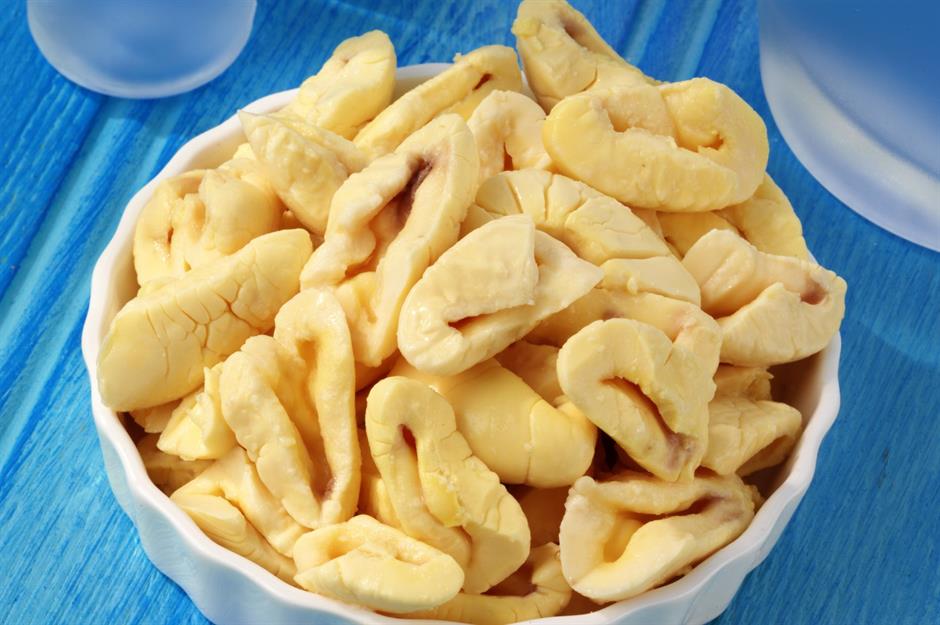 The name casu marzu translates as ‘rotten cheese’. If that isn’t enough to put you off, how about the fact that it contains fly larvae? This soft, gooey hunk is created by leaving sheep's cheese out for cheese flies, which lay eggs inside the rind. When the larvae hatch, they feast on the cheese and break down the fats.