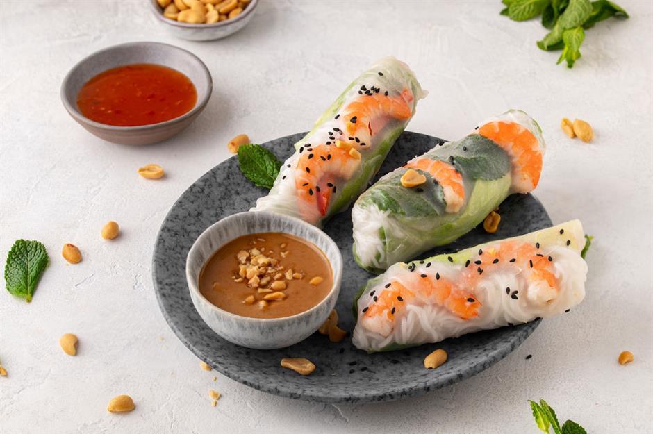 Having a bag of cooked frozen prawns in the freezer is a lifesaver. Defrost them in the fridge overnight and use them in this Vietnamese-inspired salad with mint, coriander, Thai basil, pomelo, carrot, cucumber and spring onion. A spicy, sweet and sour dressing, plus a sprinkling of peanuts, brings everything together beautifully.