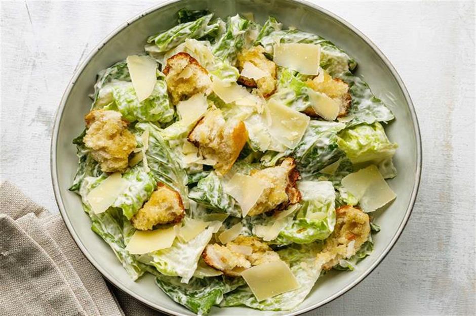A homemade Caesar dressing knocks the socks off anything you might buy at the shops – and it's incredibly easy to make. For the dressing, place two large hard-boiled eggs, five anchovies, a garlic clove, 1 tsp Dijon mustard, 5.3fl oz (150ml) olive oil and 0.7oz (20g) grated Parmesan into a food processor. Cover two heads of chopped romaine lettuce in the dressing, then finish with ready-made croutons (and add cooked chicken too, if you like). The dressing will keep in the fridge in a sealed container for up to three days.