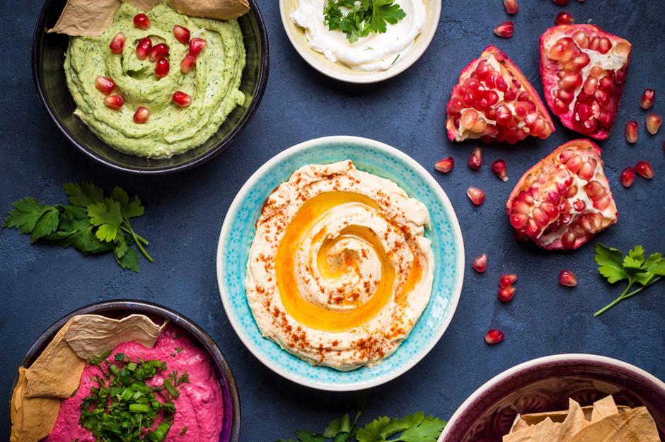 Full of healthy fats, avocados are super filling and make a great guacamole. Smash two ripe avocados and combine them with chopped coriander, a chopped chilli, salt and pepper, the juice of a lime, half a small red onion and two chopped, deseeded tomatoes. Be sure to salt the chopped tomatoes and drain off any watery juice before mixing them in – and add the avocado stone back into the finished dish to help prevent it from turning brown.