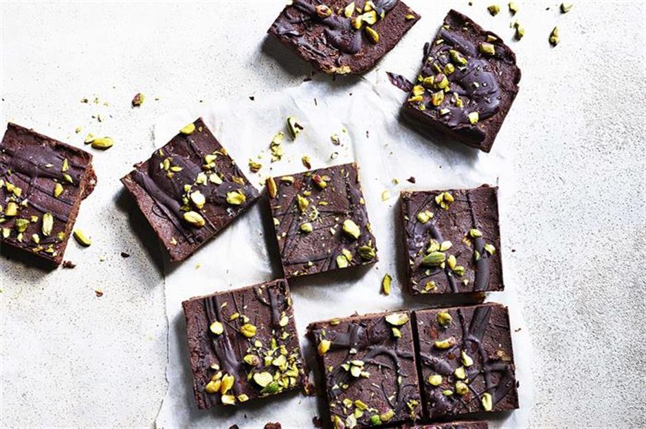 These rich chocolate and peanut butter fridge bars are made from chickpeas, dates, peanut butter and cacao nibs, meaning they're a great healthy dessert option. You can finish them off with a drizzle of melted dark chocolate, if you like.