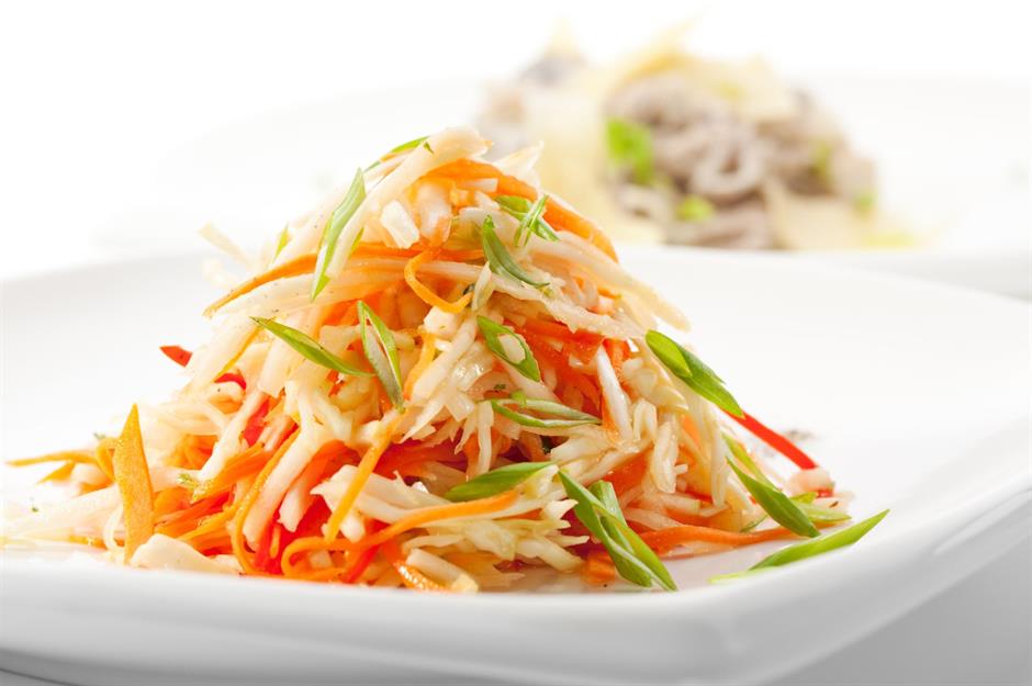 Ready in five minutes, this zippy, crunchy salad is just wonderful. Add eight carrots and an apple to a food processor using the grater attachment (if you don't have one, use a box grater instead). To make a sweet dressing, whisk the juice of four lemons, a pinch of sea salt, 2 tbsp brown sugar and 3 tbsp olive oil. Toss it over the carrot and apple, then finish with chopped spring onions and toasted walnuts. Make a big batch – it'll keep for a couple of days in the fridge.