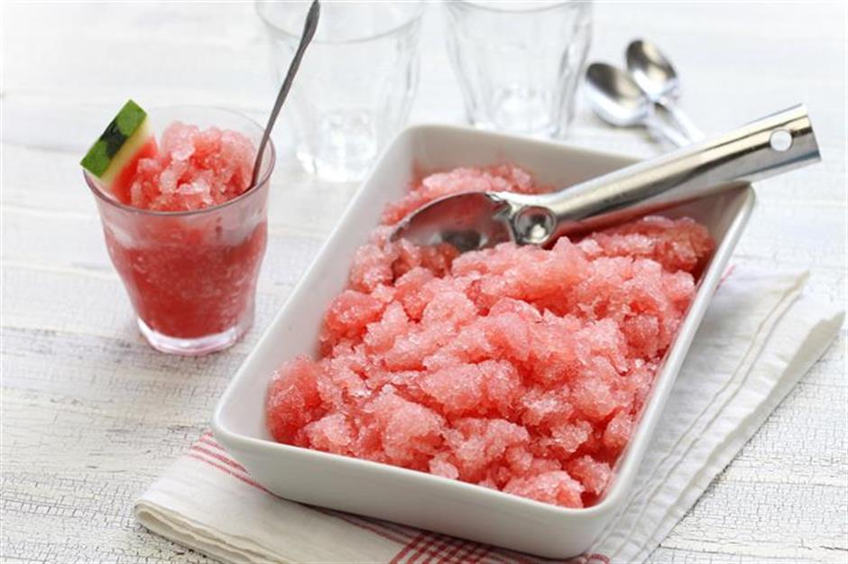 A granita is a bit like a crunchy, icy sorbet – and no churning is required to make it. Add a ripe watermelon, the seeds from a pomegranate, the zest and juice of two limes and a handful of fresh mint leaves to a blender, then blend until smooth. You can pass it through a sieve to get rid of all of the seeds and excess residue. Place the mixture in the freezer for around two to three hours, then scrape it with a fork to ensure it’s well mixed and icy.