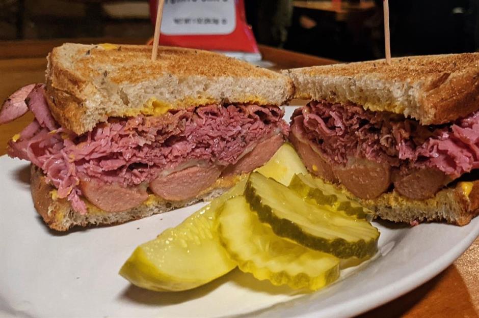This Middle Eastern deli might be the last place you’d expect to find a Reuben this good, but loyal fans say the team serve up the best in the city. Expect thick layers of pastrami, melted Swiss cheese, tangy sauerkraut, and Russian dressing, all squashed inside grilled rye bread. You can sub the pastrami for corned beef, corned beef tongue, or turkey. Other popular sandwiches include the turkey club, chicken cutlet roll, and the Dagwood (four slices of rye, spicy salami, turkey, American, Swiss, and provolone cheese, lettuce, tomato, onion, and special sauce).