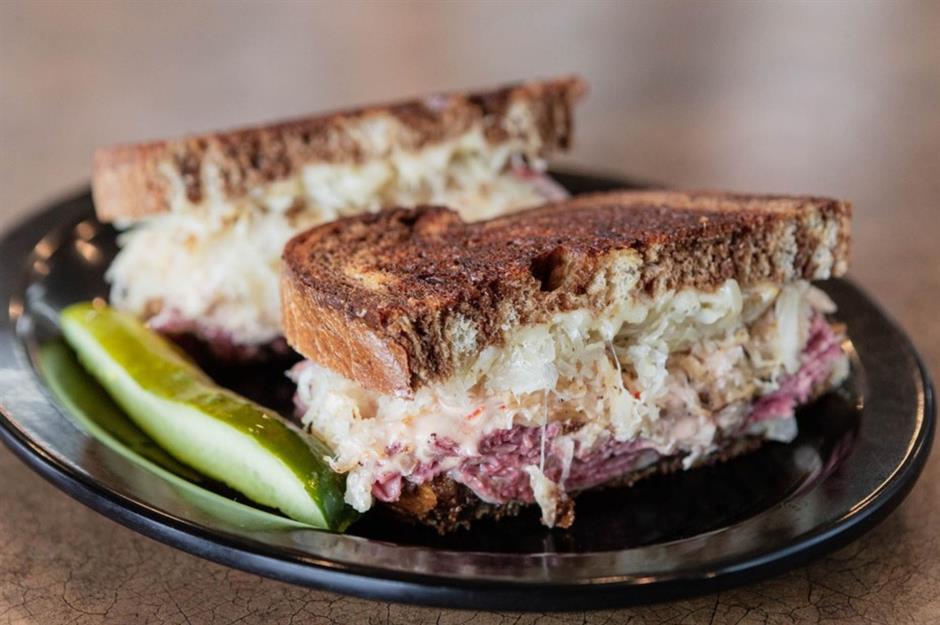 Madison favorite Stalzy's Deli is one for home comforts, with an emphasis on Wisconsin produce in generous proportions. Although Stalzy's roast beef sandwich (served in a salty pretzel bun) deserves an honorable mention, it's the Reuben that consistently wins hearts. It's a simple yet oh-so effective combination of corned beef, Swiss cheese, house-made sauerkraut, and Russian dressing, served on freshly baked rye.