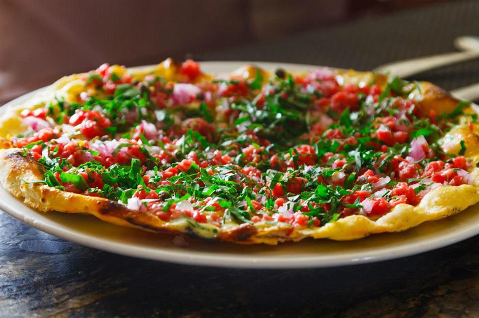 Jackson's Snake River Grill has been serving food with wow factor for more than 25 years. The dining room is rustic, with wood and brick details, roaring fireplaces, and flickering candles, and the menu is seriously imaginative. A particular highlight is the steak tartare pizza (pictured), topped with Black Angus New York beef, garlic aioli, capers, parsley, and red onion. Unsurprisingly, the creativity on show here has earned Snake River Grill a number of TV appearances, accolades, and a raft of exceptional reviews.