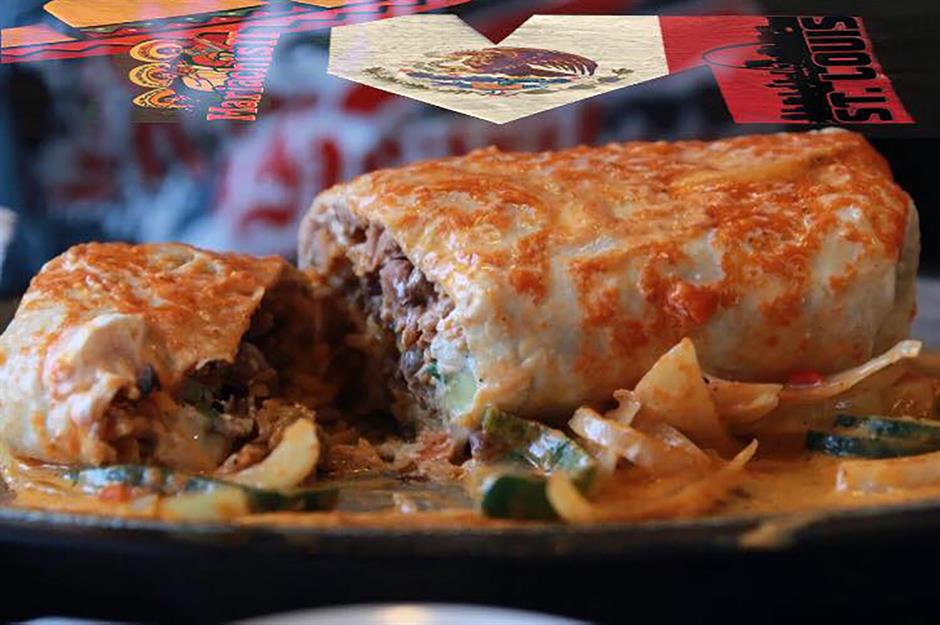 St. Louis staple Mariachi’s II Mexican Restaurant takes the parts we love the most about fajitas and burritos and combines them. The fajita burrito is a large flour tortilla filled with rice, beans, pico de gallo, cheese, and sour cream, perched on top of a skillet of cooked onions and peppers, then covered in cheese and red sauce. Guests say they’re in love with the combination.