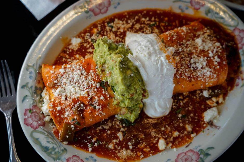 This no-frills restaurant, one of the most highly rated eateries on Yelp – and is particularly loved for its burritos. The toasted flour shells typically come filled with rice, beans, lettuce, tomato, cheese, sour cream, and avocado, with your choice of taco meat, though the restaurant’s most requested filling is beef and cheese. The cheese gets oozy, the beef is succulent, and one burrito is big enough to satisfy the hungriest of customers.