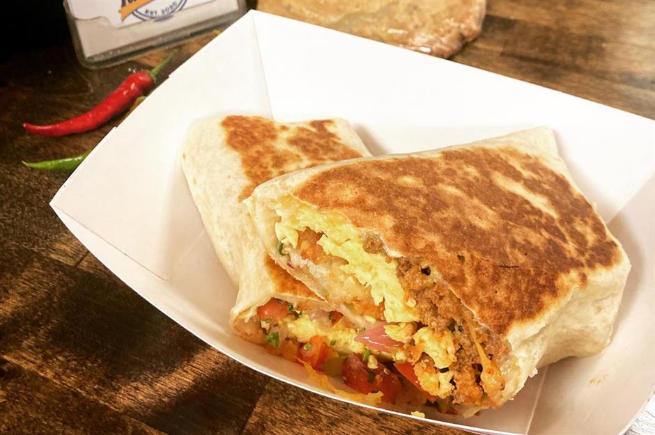 Head to taqueria and coffee shop El Tesoro for a small but filling breakfast burrito that gets rave reviews. It’s a fresh flour tortilla that’s rolled up with cheese and your choice of filling, then griddled to perfection. Customers love the vegetarian options such as migas (scrambled egg, queso, Mexican-style corn, tortilla crumbs, and pico de gallo) and frijalero (refried black beans, scrambled egg, queso, and pico de gallo). There can be a long line for food, but customers reckon it's worth it.