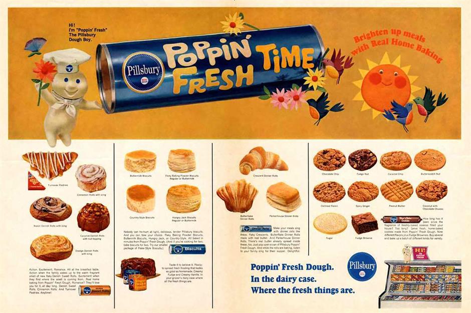 It wasn’t until 1965 that Americans got to meet the company's famous mascot, Pillsbury’s iconic Doughboy. Copywriter Rudy Perz from the Leo Burnett ad agency thought up Poppin’ Fresh (the Doughboy's full name) to market the company's ready-made dough. The idea came to him when he popped open a can and imagined the lovable character jumping out.